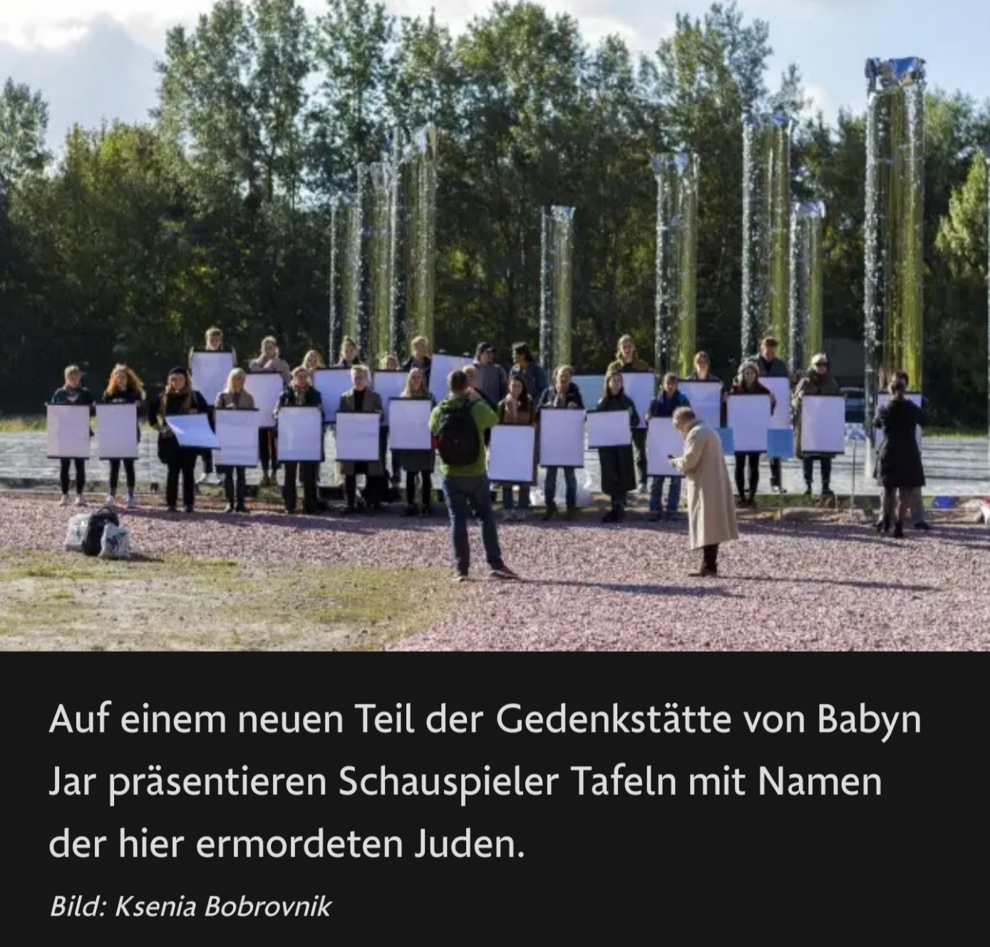 Pressefoto der FAZ zur Präsentation unserer Gedenktafeln an der Gedenkstätte in Kiev 2021…