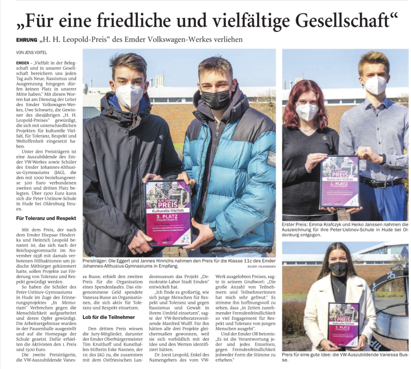 Auszeichnung des Huder Erinnerungsprojektes IN MEMORIAM… mit dem H.H.Leopold-Preis der Volkswagenstiftung 2022…