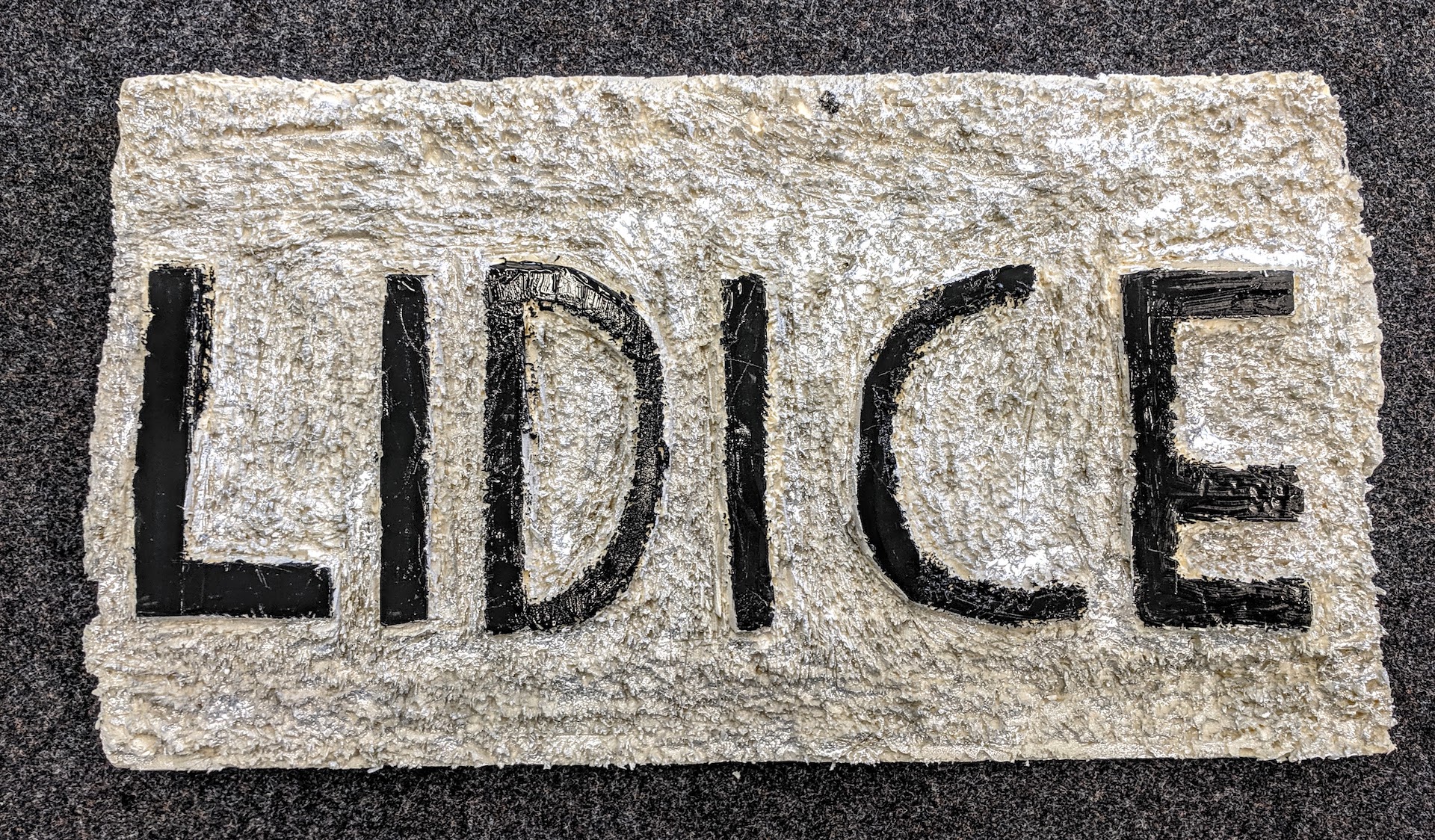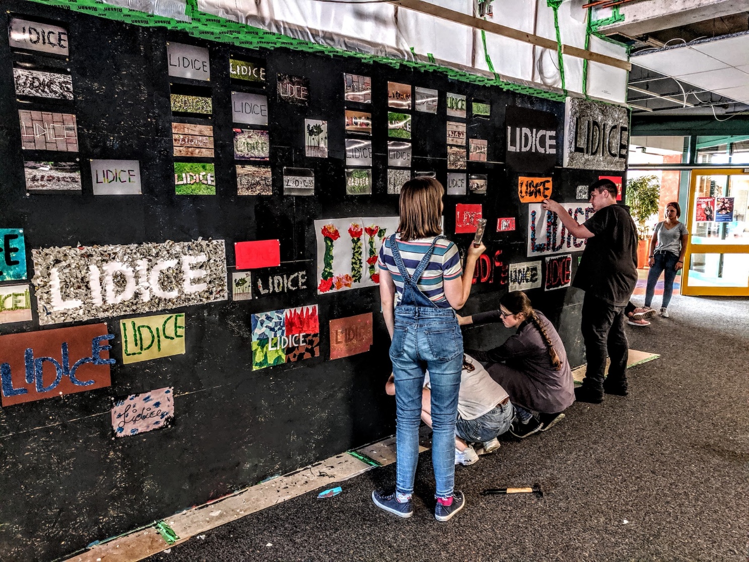 Präsentation der Erinnerungscollage für Lidice, den Ort, dessen Name trotz aller faschistischer Bemühungen nicht vergessen wurde…