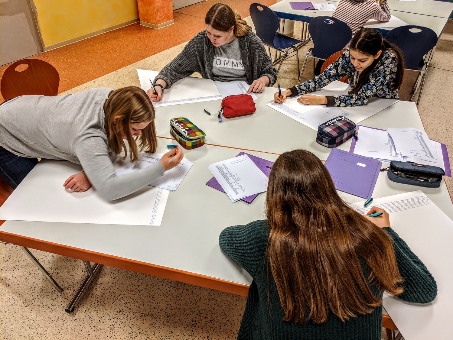 Lernende bei der Arbeit an der Gedenkpräsentation für die Ermordeten von Babyn Jar in der Ukraine…