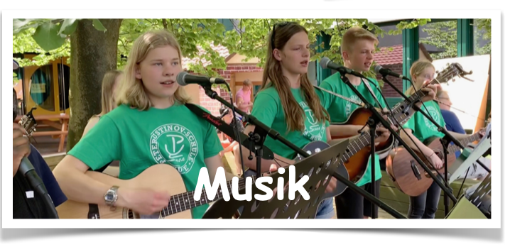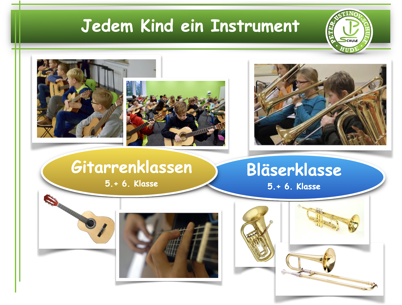 Jedes Kind lernt im Musikunterricht in der 5. und 6.Klasse ein Instrument (Blasinstrument oder Gitarre). Weitere Informationen finden sie hier.