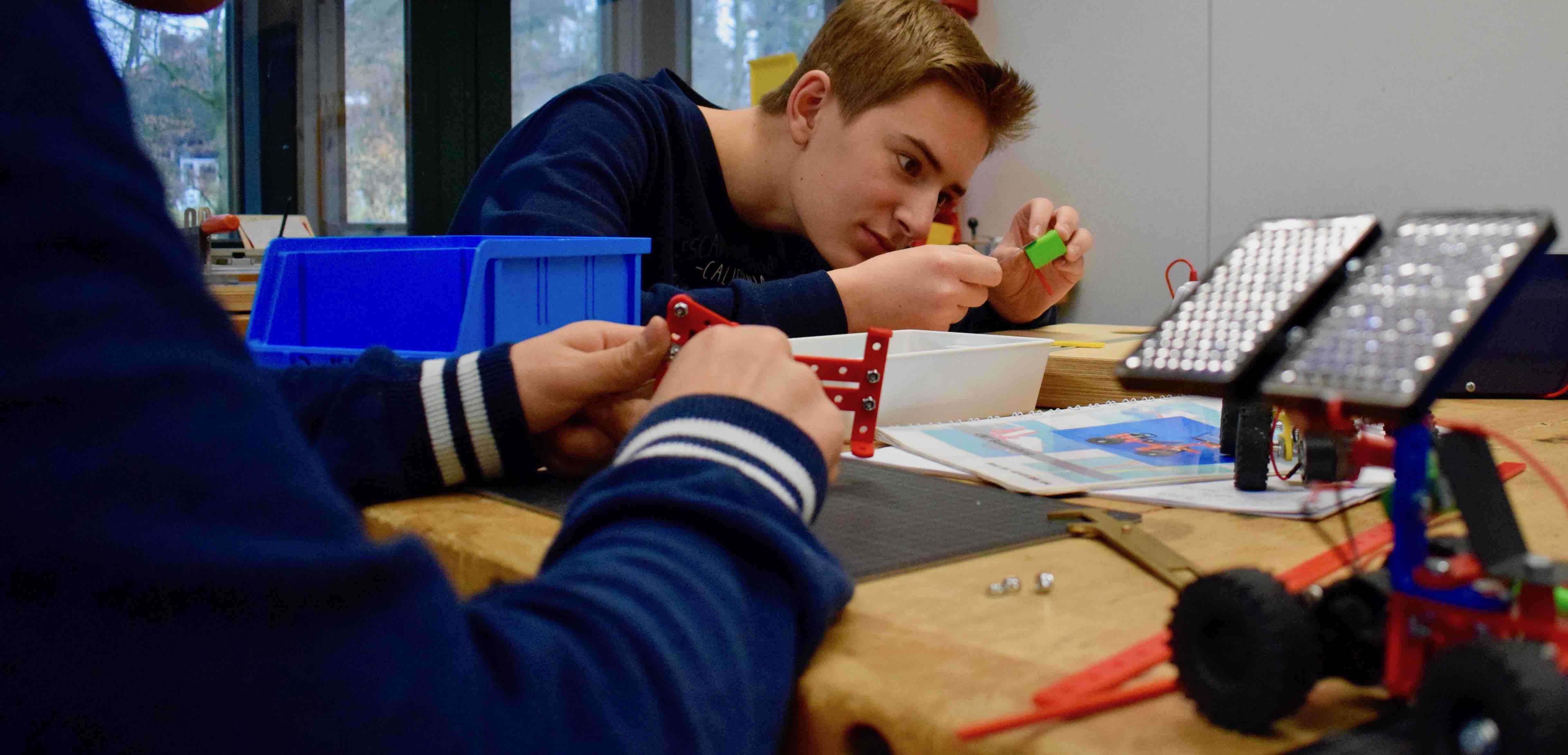 - Der Technikunterricht (Wahlpflichtkurse und Profil) ist nach dem Prinzip der theoriegeleiteten Praxis aufgebaut. Um diese im Unterricht umsetzen zu können, stehen drei voll ausgestattete Werkräume sowie ein staubfreier Technikraum zur Verfügung. Zur Vorbereitung auf Berufe, die mit CAD-Programmen arbeiten, wird das CAD-Programm AutoCAD eingesetzt.