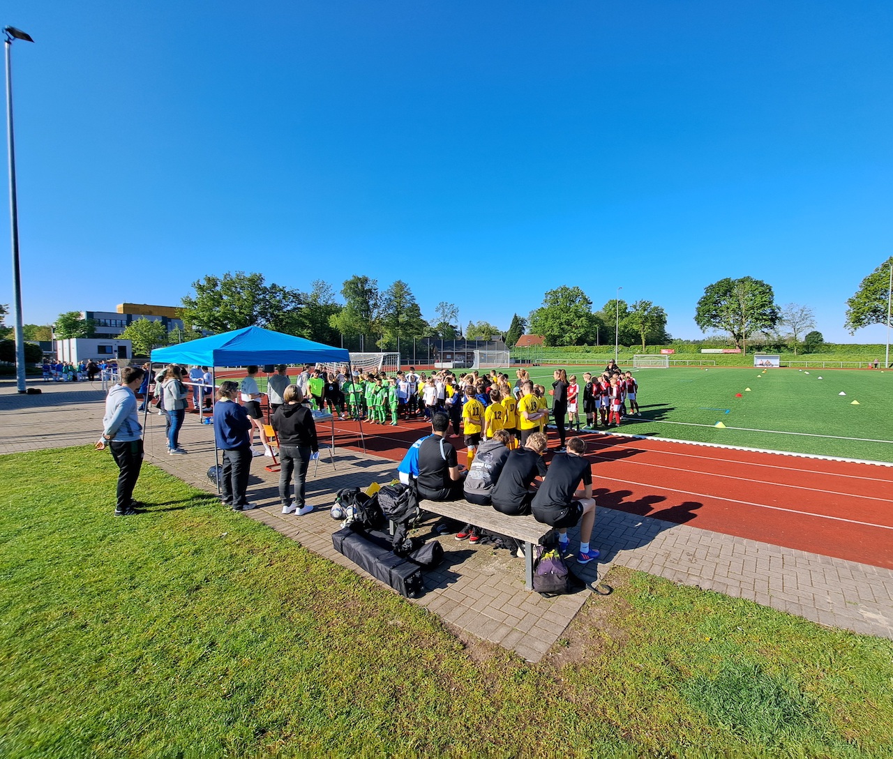 Das dritte Event ist das Fußballturnier der vier Huder Grundschulen auf der Außensportanlage bzw. Kunstrasen der PUS Hude. Organisiert durch unseren Sportlehrer Herr Zaps und unterstützt durch einige Schüler*Innen der 10. Gymnasialklasse spielen die Viertklässler in einem Turnierformat auf drei Spielfeldern den diesjährigen Grundschulsieger aus.