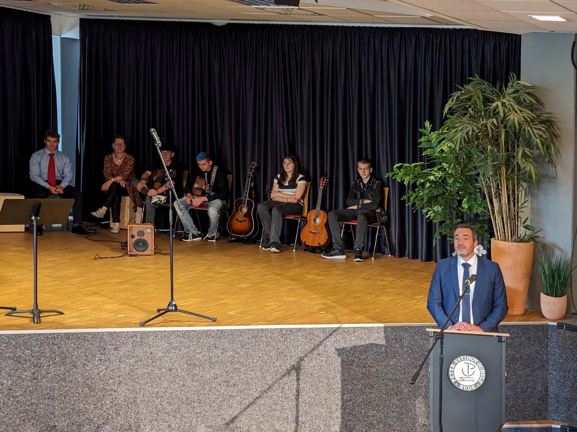 Nach seinem ersten Jahr als Schulleiter der PUS hielt Herr Grau die offizielle Laudatio und bettete die Leistung der Lernenden in die aktuellen und vergangenen Ereignisse in Hude und der Welt ein.