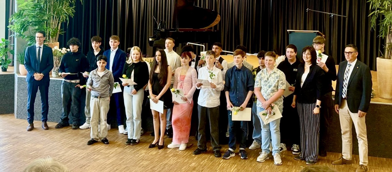 Neben der feierlichen Zeugnisübergabe wurden auch besondere Leistungen gewürdigt. Die beiden Klassenbesten jeder Klasse erhielten ein Geschenk des Fördervereins als Anerkennung für ihre herausragenden schulischen Leistungen. Darüber hinaus wurde zahlreichen Eltern gedankt, die durch ihre tüchtige Gremienarbeit und Unterstützung im Förderverein einen wertvollen Beitrag zum Schulleben geleistet haben.