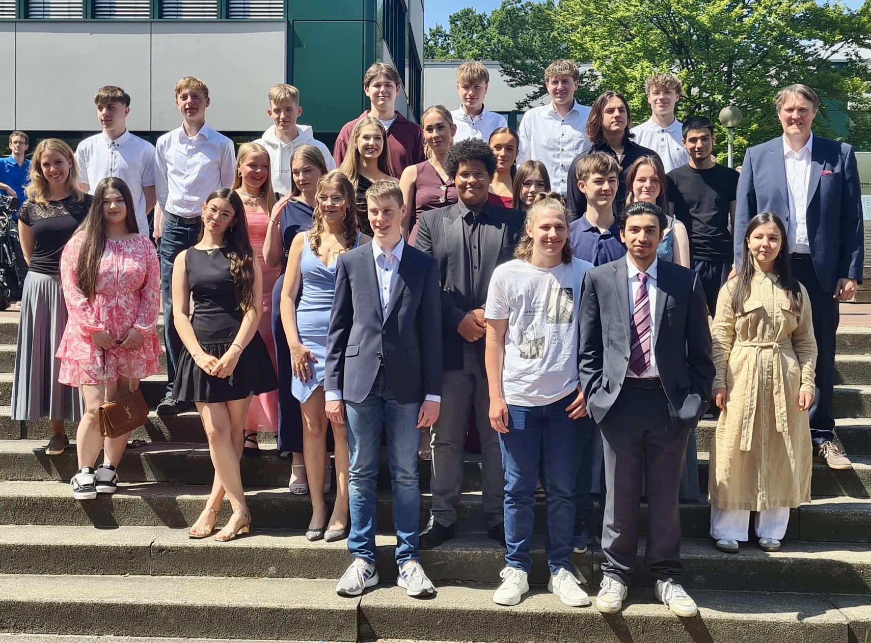 Der rote Faden der Rede von Herrn Wachtmeister spannte sich von den Begriffen „Herz und Liebe“, welches Themen in der diesjährigen Deutsch-Abschlussprüfung waren, bis hin zum Überwinden von Hürden und Hindernissen während der Schulzeit. Er ermutigte die Schülerinnen und Schüler, die Herausforderungen des Lebens mit Entschlossenheit und einem offenen Herzen anzugehen.