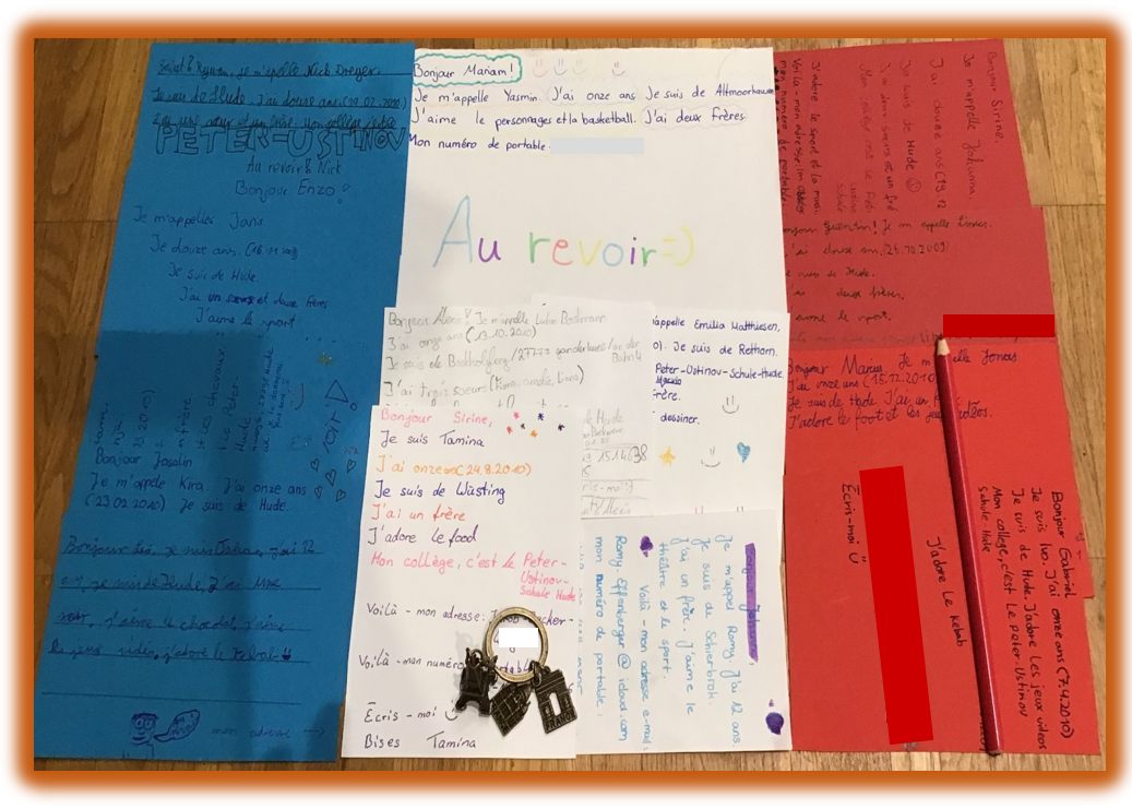 Da coronabedingt leider auch in diesem Schuljahr kein Deutsch-Französischer Schüleraustausch stattfinden kann, überbrücken die Französischschüler/innen des 6. Jahrgangs die „kontaktlose“ Zeit mit Brieffreundschaften zu den Schülerinnen und Schülern unserer Partnerschule in Arnage.
