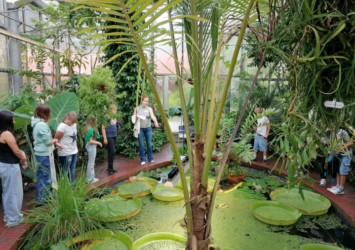 Umgeben von exotischer Pflanzenpracht wurden die Schülerinnen und Schüler zu kleinen Abenteurern und erlebten das tropische Klima hautnah.