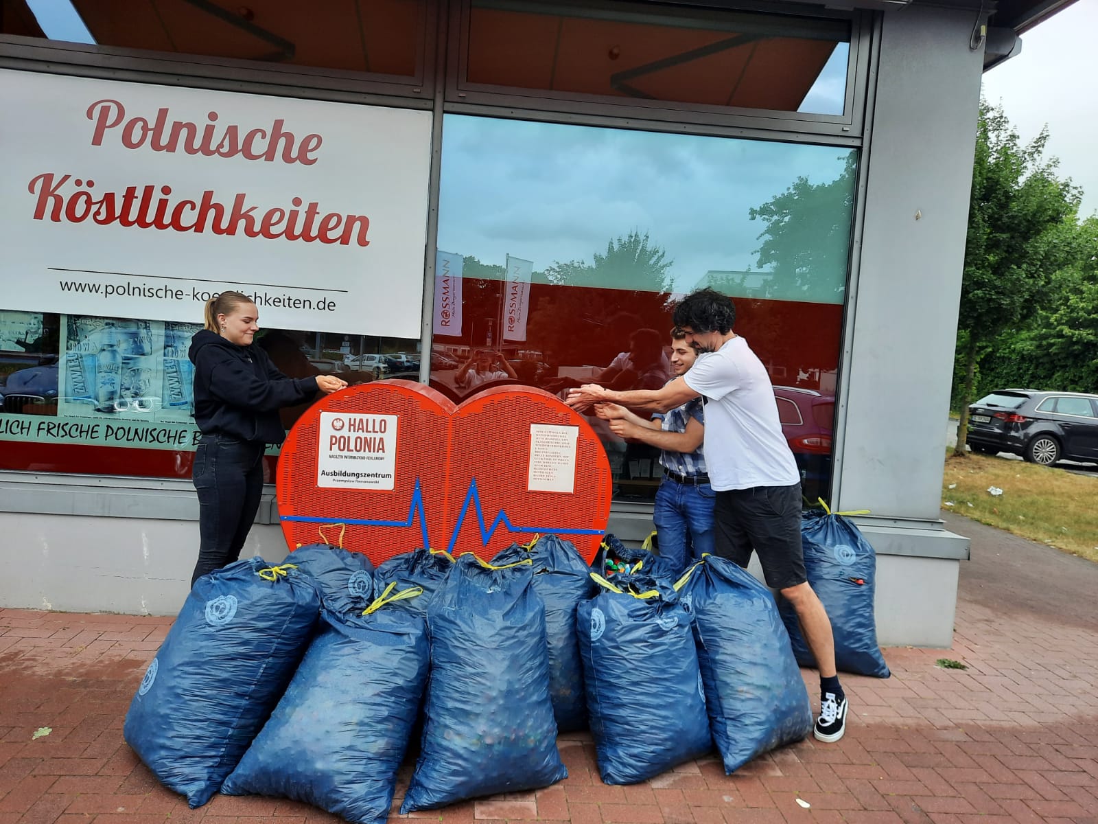 Alle Klassen waren dazu aufgerufen, die alten Plastikdeckel von Getränkeflaschen, Spülmitteln, Waschmittelfaschen usw. abzuschrauben und zu sammeln. In Kooperation mit dem Geschäft „Polnische Köstlichkeiten“ aus Oldenburg-Kreyenbrück wurden diese Deckel nach Polen transportiert und dort gegen einen Geldbetrag eingelöst.