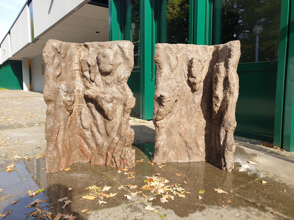 Anschließend wurde mithilfe von Epoxidharz Sand und Kies an den Rückwänden befestigt und so ein natürliches Erscheinungsbild erschaffen. Um eine deckende Oberfläche zu erzeugen, waren dafür mehrere Schichtungen notwendig.