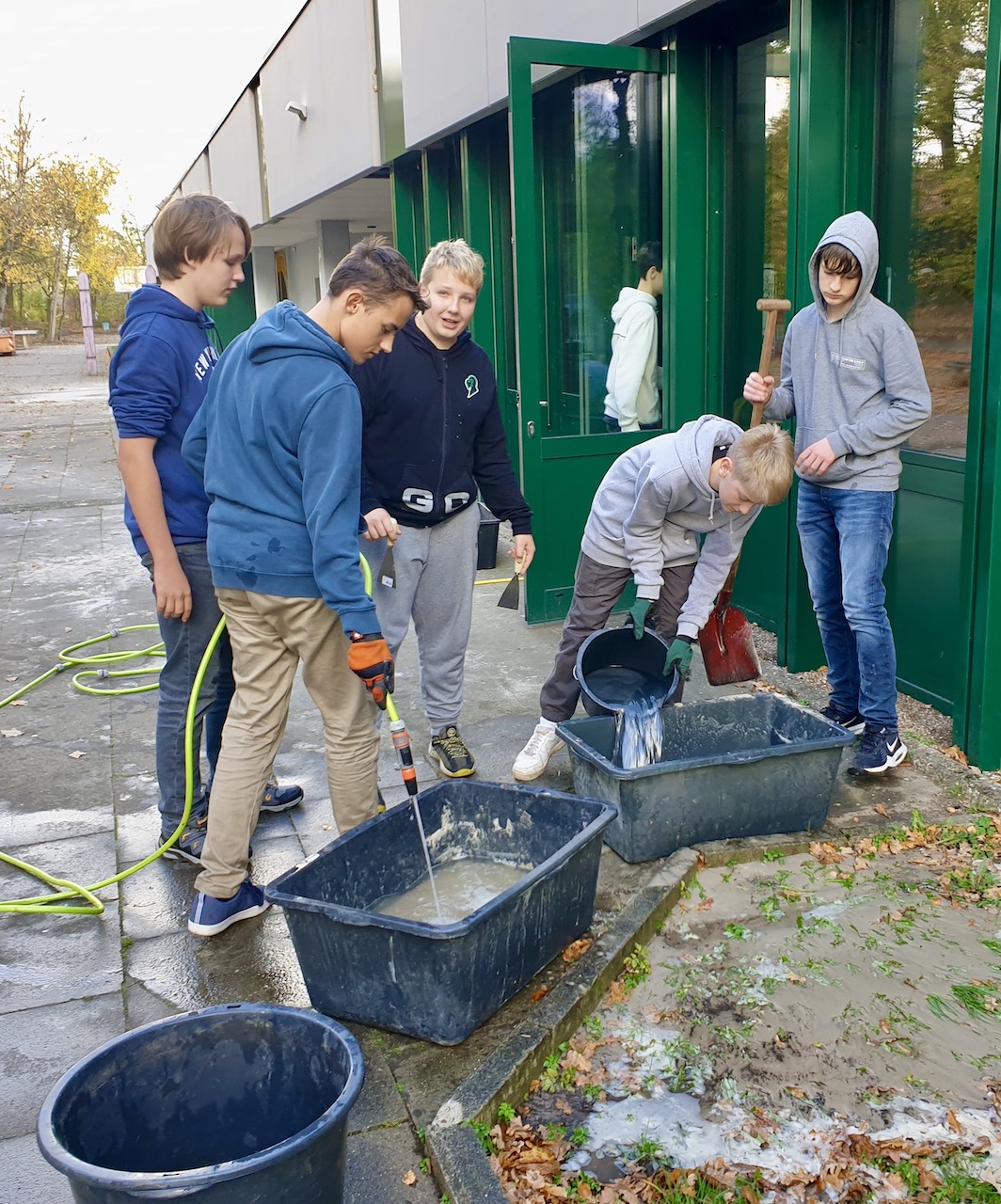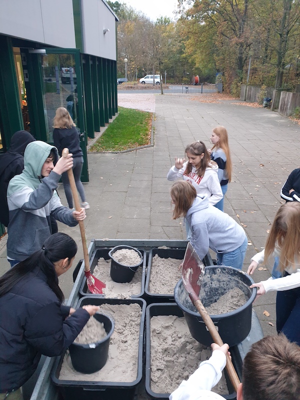 Große Mengen an Flusssand mussten von den Schülerinnen und Schülern ausgewaschen und vorbereitet werden, um dann als Bodengrund eingebracht zu werden. Sorgfältig wurden große Flussklieselsteine platziert und schließlich erste Wasserpflanzen eingebracht.
