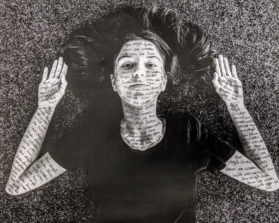 „Herr, vergib ihnen, denn sie wissen nicht, was sie tun“, Foto und Filzstift, Isabell Reichle 2019