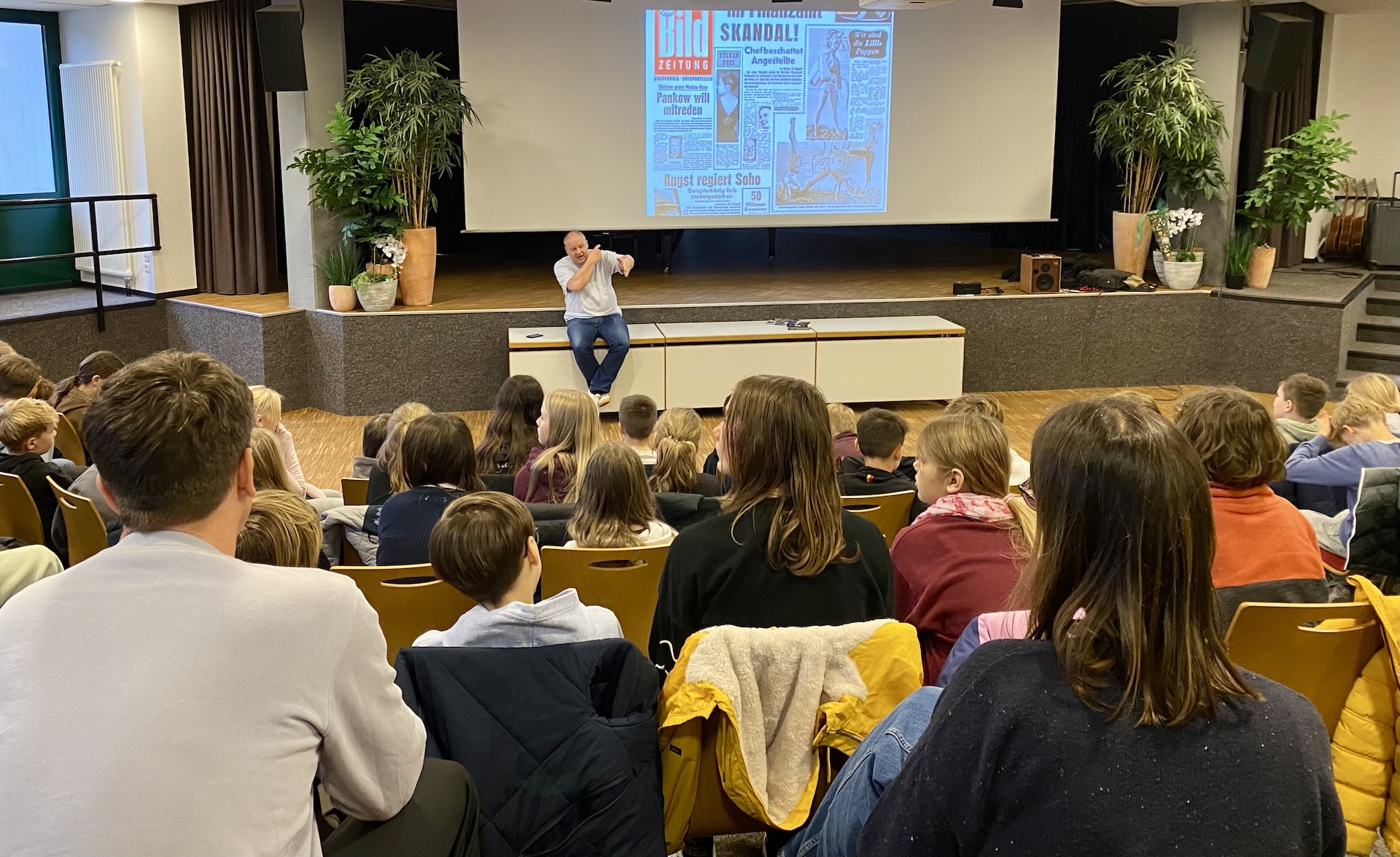 Prompt: Füge eine Passage ein, die den Vortrag als besonders anschaulich, nachvollziehbar und altersgerecht beschreibt. Betone seine lebendige Vortragsweise und die Einbindung der Schülerinnen und Schüler.