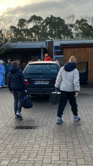 Die Schülerinnen und Schüler der Bläserklassen konnten sich auf der Konzertreihe durch die Grundschulen des Huder Schulverbundes fast wie Popstars fühlen. Sie überbrachten an drei verschiedenen Konzerttagen musikalische Neujahresgrüße an die GS Wüsting, die GS Hude-Süd, die katholische Grundschule und die GS Jägerstraße und wurden dabei mit einem Bandbus (VW-Bulli oder PKW eines Elternteils) chauffiert und die Instrumente wurden vom Schulbegleiter eines Bläserkindes mit privatem PKW transportiert und zum Teil auf und wieder abgebaut.