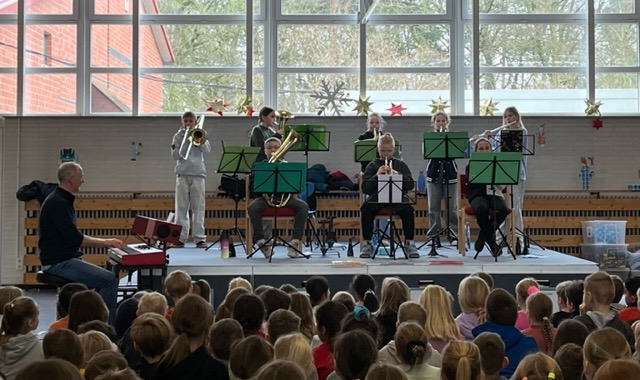 Wenn ein Star sich auf seine (musikalische) Herkunft - seine Wurzeln- besinnt, dann spricht man von „back to the roots“. Die Bläserkinder sind in ihre Grundschulen zurückgekehrt, um dort Musik zu machen und ihre tolle Entwicklung an ihren Instrumenten präsentieren zu können.