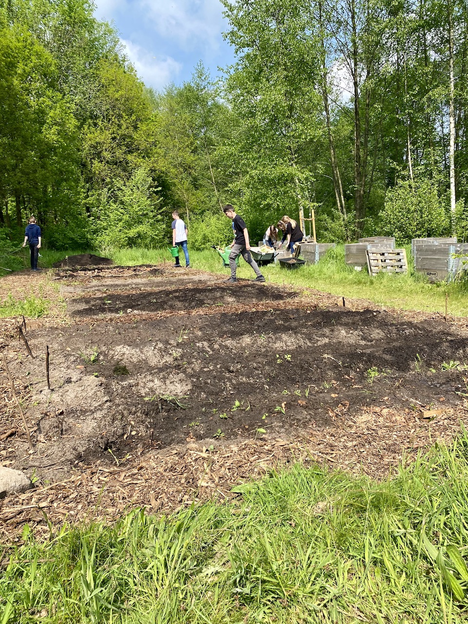 Das Naturklassenzimmer nimmt immer mehr Formen an! In und an der Natur zu lernen, diese durch den Jahreskreislauf zu begleiten, Kartoffeln und Kräuter wachsen zu sehen, sind ein Aspekt dieses neuen „Schul“-Raums.