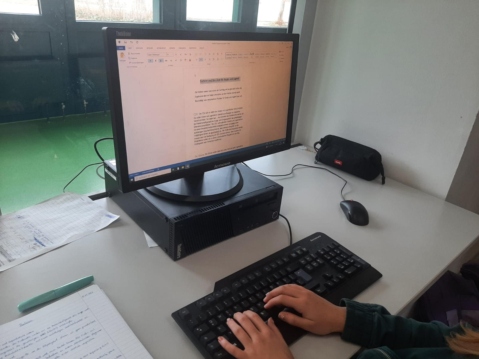 Daraufhin wird dies mit allen anderen Artikeln, wofür dann bereits recherchiert wurde, in die Computer abgetippt. Wenn dann auch diese Artikel fertig sind, werden sie von Frau Beckmann abgespeichert und später auf richtiges Papier abgedruckt, welches zuletzt die Schülerzeitung wird. Währenddessen haben wir dann bereits die Werbeplakate für die nächste Ausgabe gestaltet und auf gehangen.