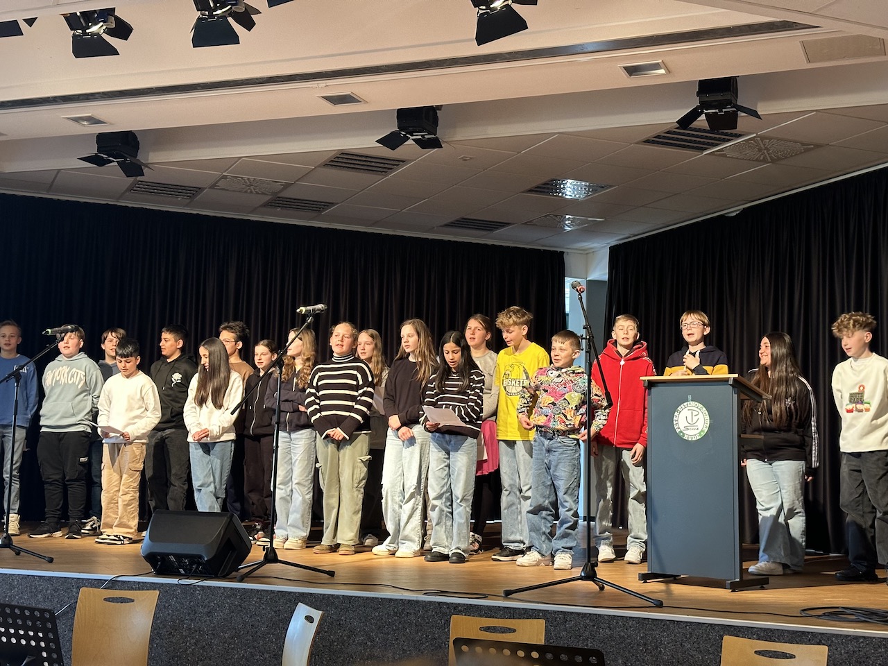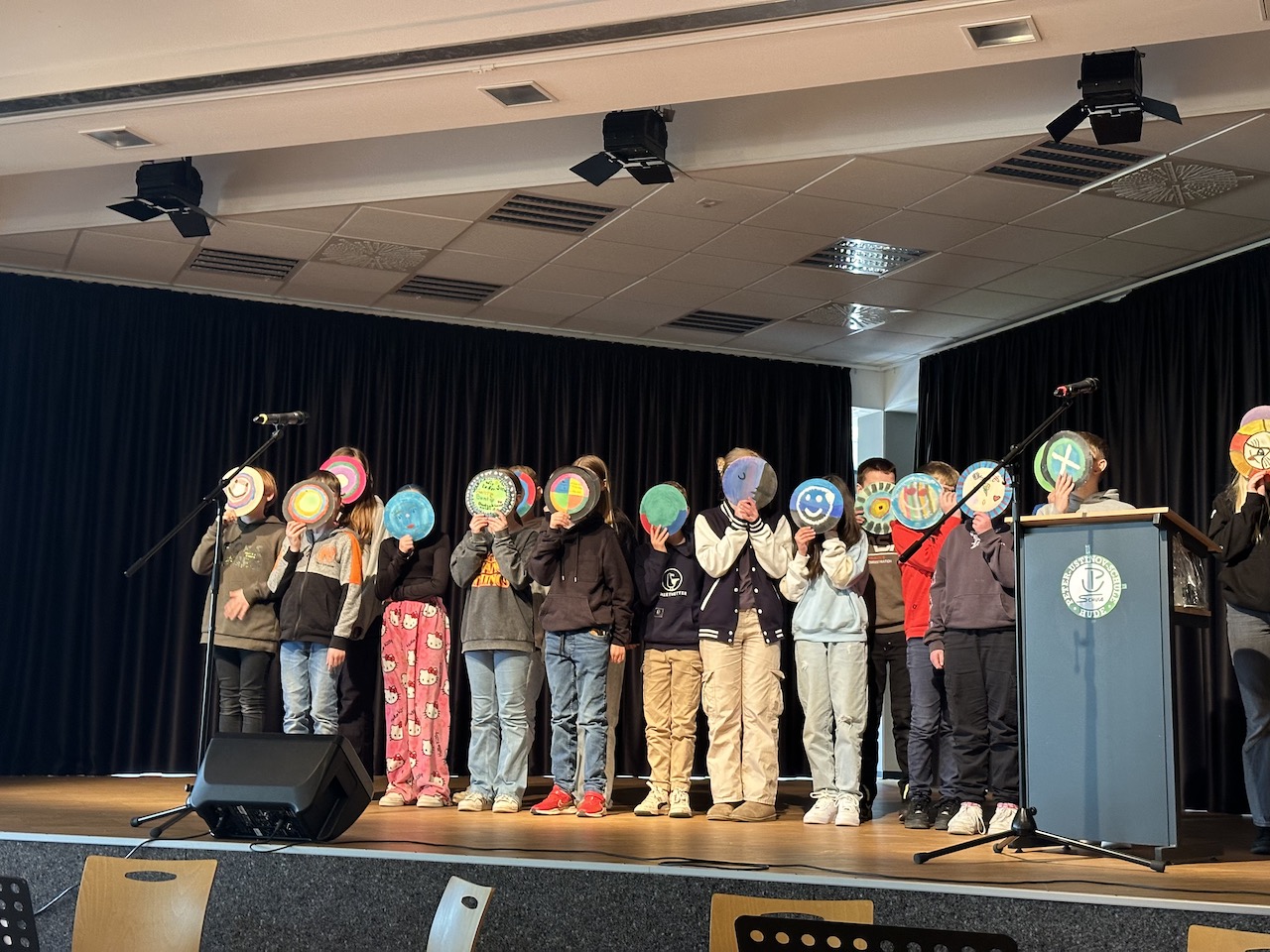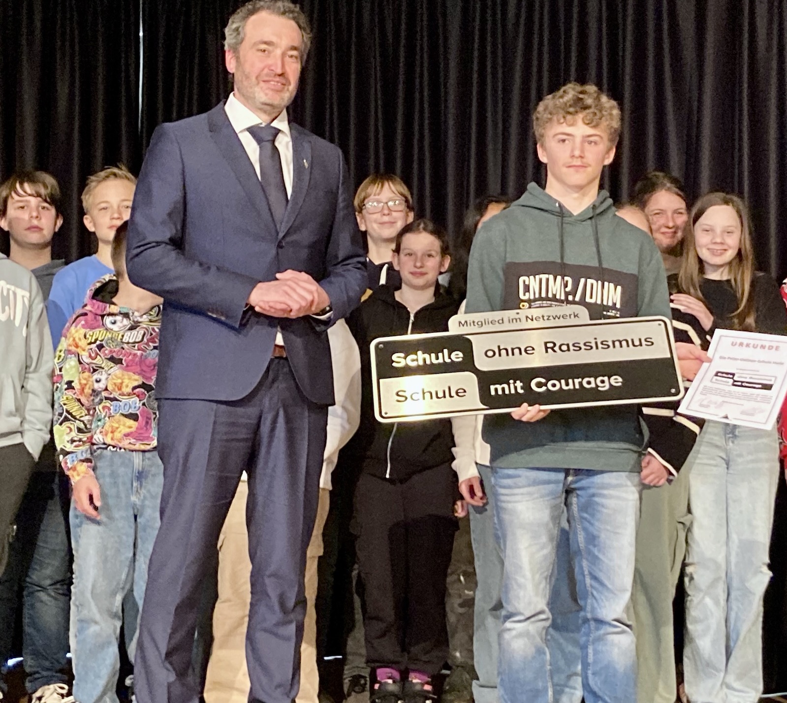 In einer berührenden Ehrungsfeier wurden Beiträge aus allen Jahrgängen der Schule präsentiert, die alle eine Botschaft hatten: Nicht hier! Hier ist kein Platz für Rassismus!
