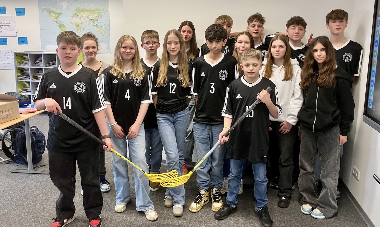 Nach etwa drei Wochen einer Unterrichtseinheit in Sport zum Thema Hockey erfuhren wir von dem Schulwettbewerb und meldeten uns spontan an, ohne größere Erwartungen zu haben. Frau Dobe organisierte in Kooperation mit einem Elternteil einer anderen Klasse auf die Schnelle noch Schultrikots und der Floorballverband Niedersachsen lieh uns im Januar ein Schlägerset mit den „richtigen“ Floorballschlägern aus. So konnten die Schüler*innen im Sportunterricht weiter an Technik und Taktik arbeiten.