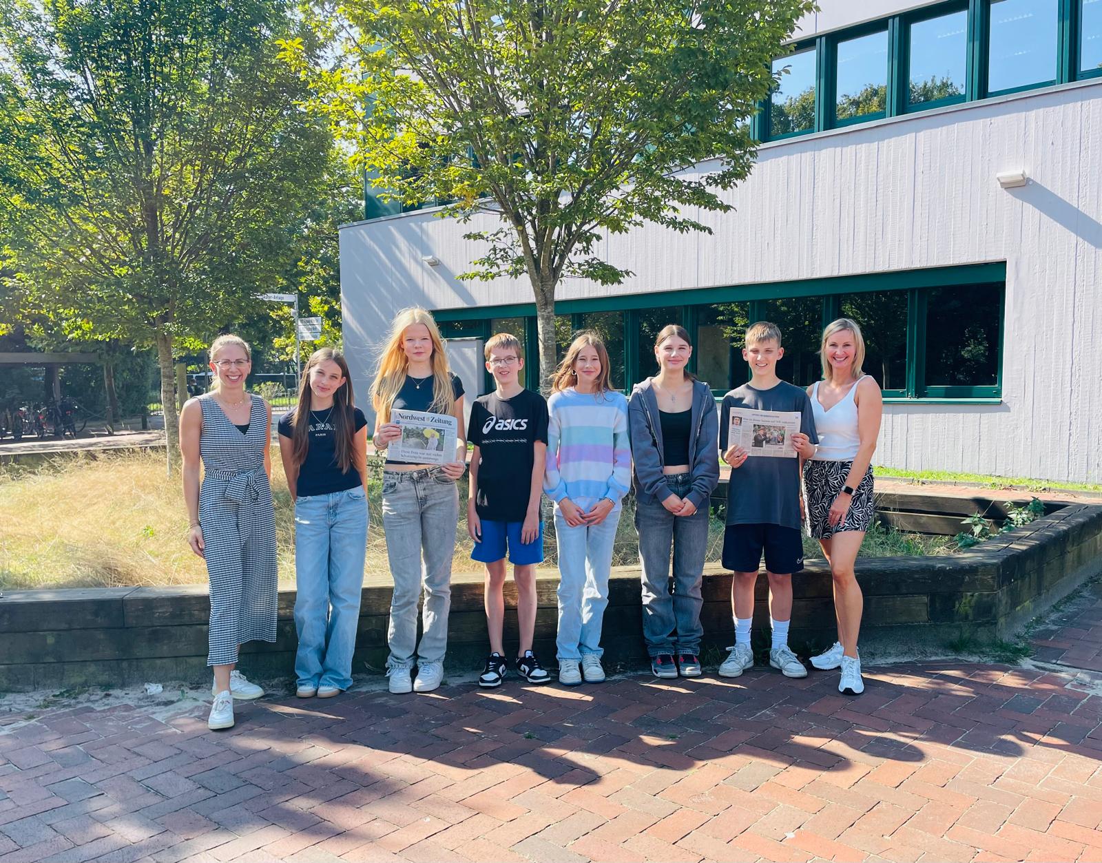 Die Klassen 8Ga, 8Gb und 9Ga der Peter-Ustinov-Schule nehmen vom 20. September bis zum 6. Dezember am spannenden Projekt "Zeitung in Schule“ teil. In Kooperation mit der Nordwest-Zeitung erhalten die Schülerinnen und Schüler einen tiefen Einblick in den Entstehungsprozess einer Tageszeitung. Ziel des Projekts ist es, die Medienkompetenz der Jugendlichen zu fördern und ihnen die Bedeutung von Journalismus und freier Berichterstattung näherzubringen.
