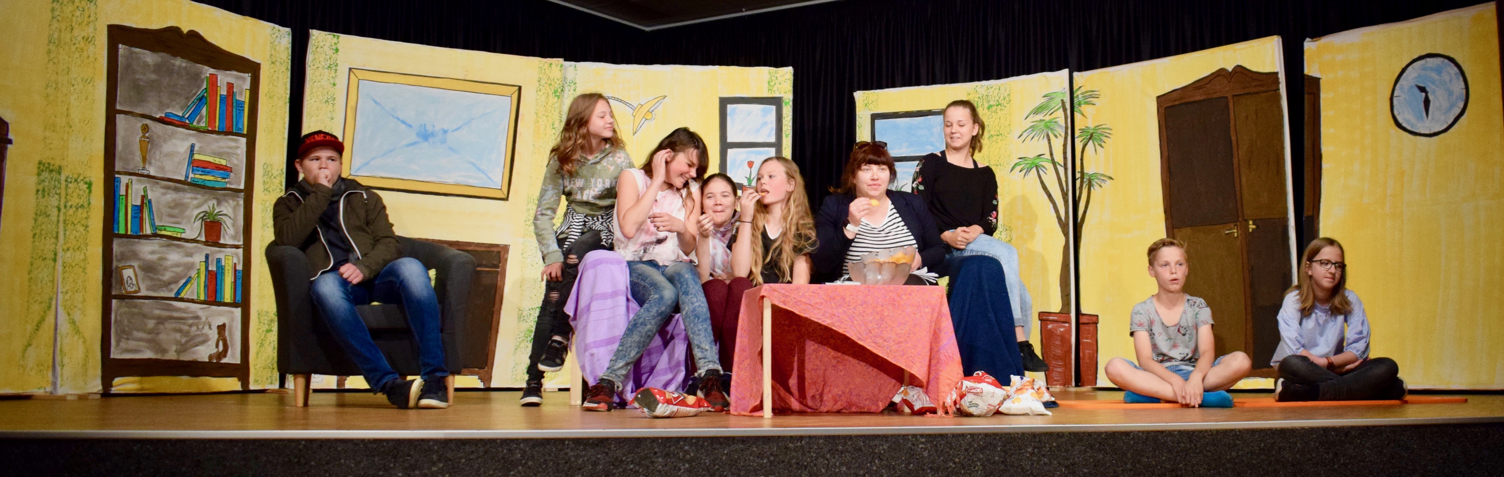 ‚Watch out’ hieß es am Montag, den18.6. im Forum der Peter-Ustinov-Schule und das bedeutet so viel wie ‚Nimm dich in Acht’ oder ‚Pass auf’. In dem Stück, dass die 10 Schülerinnen und Schüler der Klassen 6 bis 8 selber entwickelt haben, schauen 9 Freunde eine Fernsehserie mit dem gleichen Titel. In dieser Serie geht es hoch her, denn die jugendlichen Serienfiguren gehen nicht gerade nett miteinander um und müssen ständig ‚aufpassen’, dass sie nicht von anderen bloßgestellt werden. Die Freunde, die die Serie schauen, beschließen schließlich, nicht einfach weiter zuzugucken sondern selber einzugreifen. Die Idee zu diesem Thema entstand aus Improvisationen und wurde schließlich vom Leiter der AG Herrn Mattenheimer in eine Textfassung gebracht.